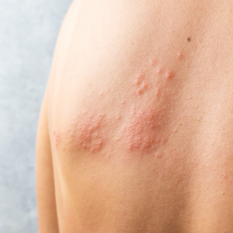 - Erupções cutâneas: após a dor inicial, surgem erupções na pele, geralmente em um lado do corpo, formando uma faixa ou área restrita. Essas erupções evoluem para bolhas cheias de líquido.